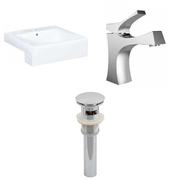 - Includes: 1 bathroom vessel sink in white, 1 bathroom sink faucet in chrome, 1 bathroom sink drain in chrome