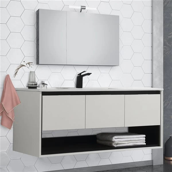 - Small depth, the use of an integral ceramic basin allows to save space while having a larger use of sinks, so that your decoration is more flexible