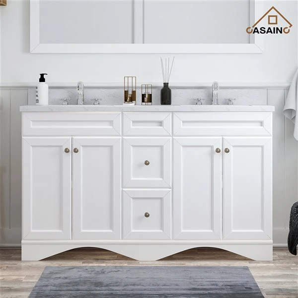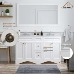 Be the first to review “CASAINC 60-in White Double Sink Bathroom Vanity With White Marble Top” Cancel reply