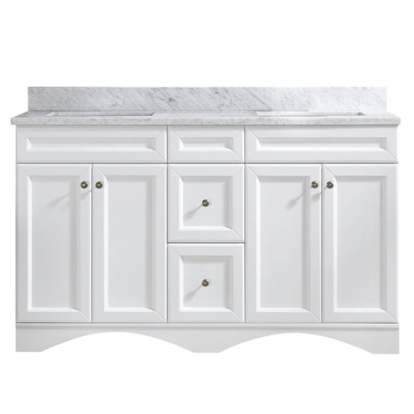 CASAINC 60-in White Double Sink Bathroom Vanity With White Marble Top