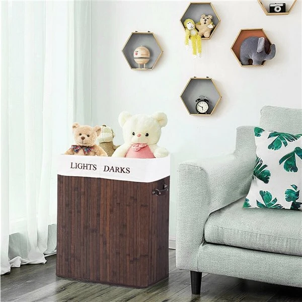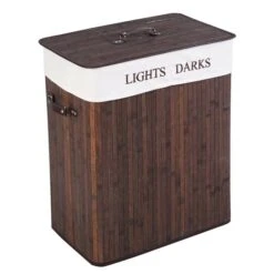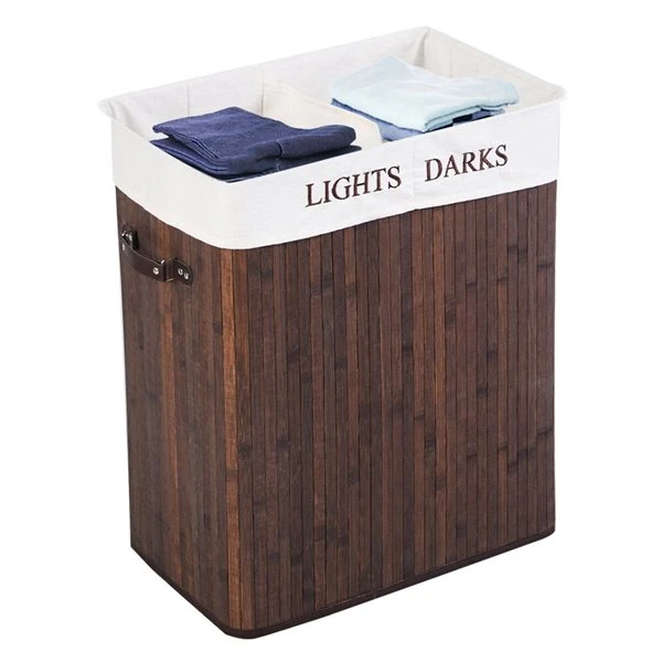 This double rectangle bamboo hamper laundry basket is good for any laundry room or home. This basket is made of bamboo, which will be durable and lightweight.