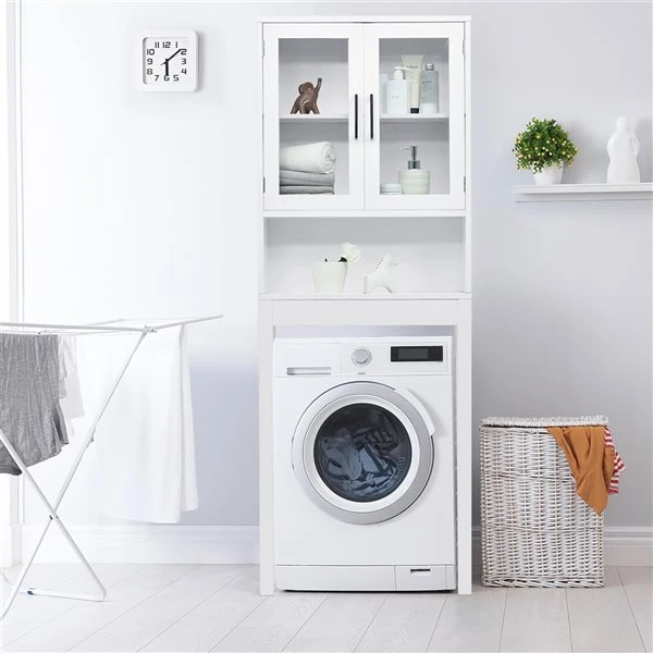 Incorporate modern style in your bathroom with this over the toilet storage cabinet. Its simple elegant design with pure white colour makes it match well with different home decor. Ample storage space including the upper cabinet with adjustable shelf and the open area at the centre keeps all of bath essentials organized.