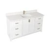 Make a big impression with the Halo collection which is sure to give your bathroom a bold new look that will never go out of style. With plenty of storage and tons of character, this vanity-sink combo is the perfect addition to your bathroom. It comes with 2 doors and 6 drawers which gives you plenty of storage space for all your bathroom necessities. The top, the handles and the soft-close hardware is included. Covered by a 5-year limited warranty.