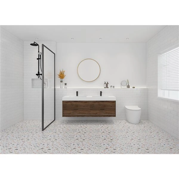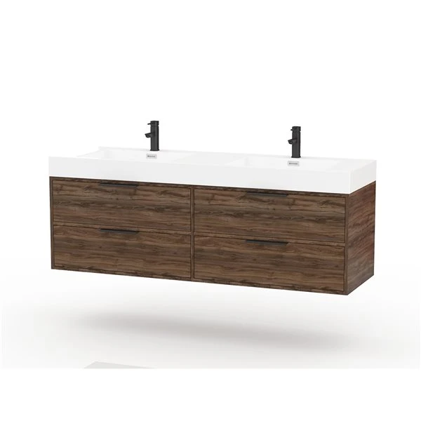 Introducing the sleek modern styling of the Savoy collection. With beautiful wood grain textures and unique spacious inset soft-close drawers, this collection is the answer to all your bathroom vanity needs. This floating vanity has it all from function and style including 4-in thick vanity tops with integrated sinks. Complete the look of your bathroom design with the quality crafted Savoy collection.