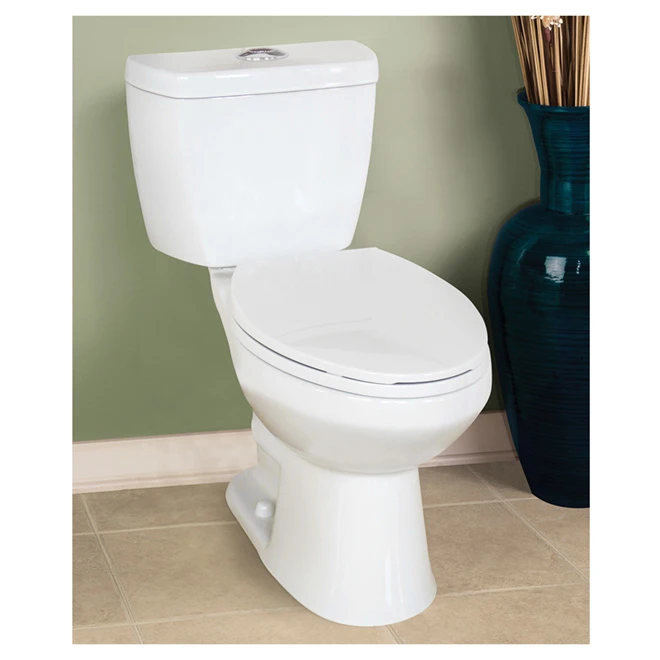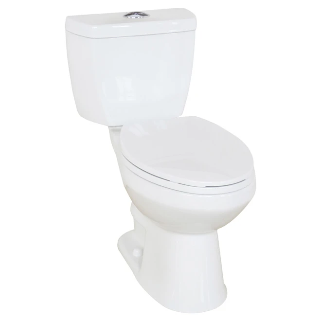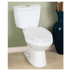 2-Piece dual flush high effciency toilet. Lined tank. 17-in plus height elongated front bowl. Siphon jet flush action. Chrome top-push button. 12-in rough-in. Includes plastic smooth close toilet seat, closet bolts, bolt covers and wax ring. Assembled dimensions: 425mm (W) x 735mm (D) x 775mm (H) / 16¾” (W) x 29″ (D) x 30½” (H). 5-year warranty on vitreous china and 1-year on parts.