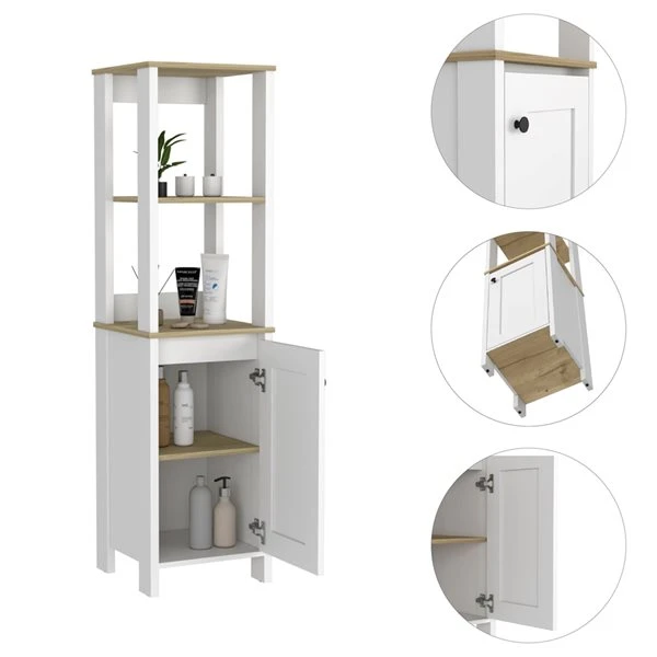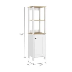 If you’re looking for a cabinet with some real personality, the Alaskan is perfect. With its beautiful light grey particleboard finishes and unique design, it’ll be the talk of your bathroom. Plus, with ample storage space, it’s perfect for all your needs, including: three shallow open shelves (8.9-in H x 9.4-in H x 5.3-in H x 15.5-in W), one drawer for more safety (5.4-in H x 15.5-in W), one-door cabinet with two internal shelves is ideal for protecting your bathroom utensils.