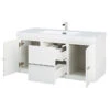 - Pre-sealed Carrara Marble countertop with rectangular porcelain undermount sink.