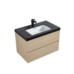The all-new wall mountĀ vanity, Sadie modern style and elegance come together for this well-crafted design. Sleek and fashionable in design it features an all wood construction cabinet with hand-applied matte-finish coat lacquer allowing for the perfect balance between colour and design. Soft-closing doors and or drawers designed to accommodate your accessories and toiletries. Its maintenance-free countertop with integrated sink and pre-drilled for single-hole faucet mount is made from a high-end quartz material that is very easy to clean and requires little maintenance. Its warmth and character provide a stunning look to complete any bathroom – whether you’re starting something brand new, or just want to spruce up an older design.