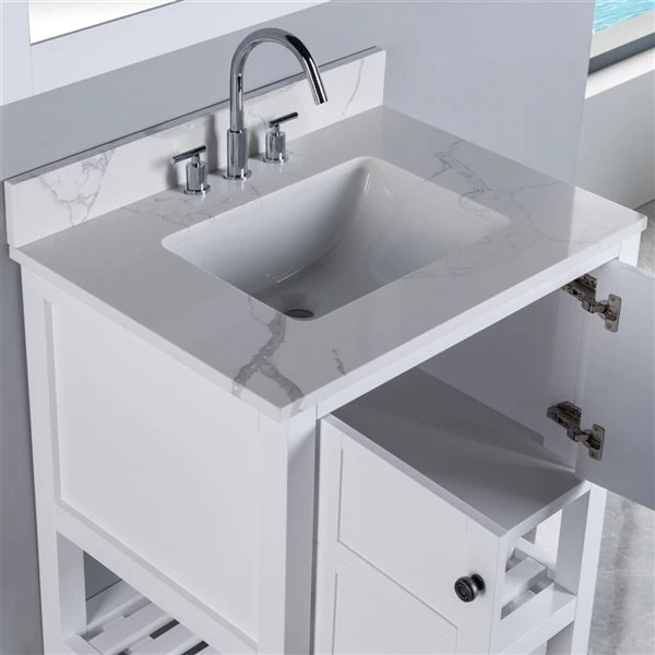 KINWELL 30-in White Single Sink Bathroom Vanity With White Quartz Top