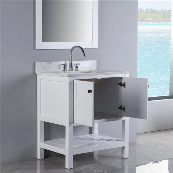 Be the first to review “KINWELL 30-in White Single Sink Bathroom Vanity With White Quartz Top” Cancel reply