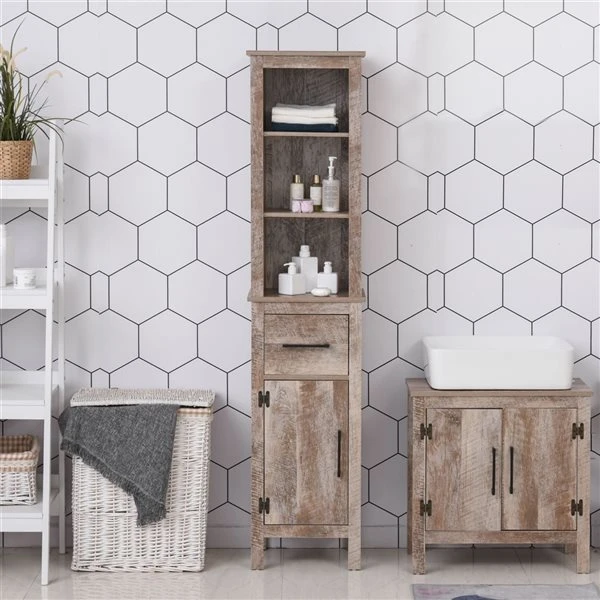 Kleankin 15.25-in W X 67.25-in H X 11.75-in D Reclaimed Barn Wood Particle Board Freestanding Linen Cabinet