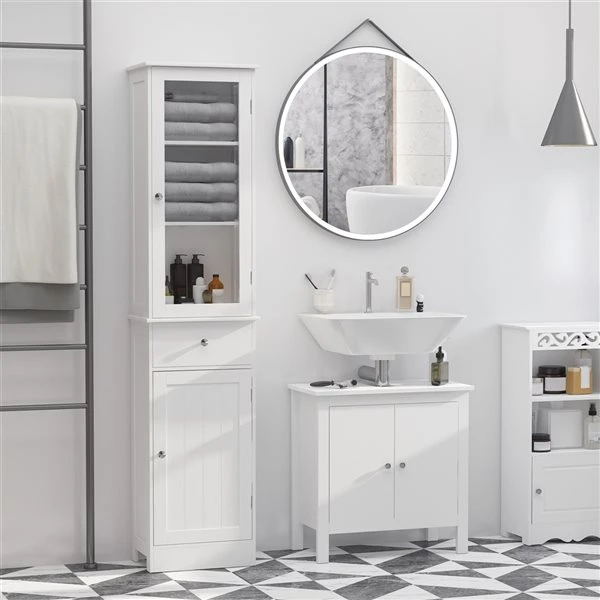 Kleankin 15.75-in W X 67.5-in H X 10.75-in D White Composite Freestanding Linen Cabinet