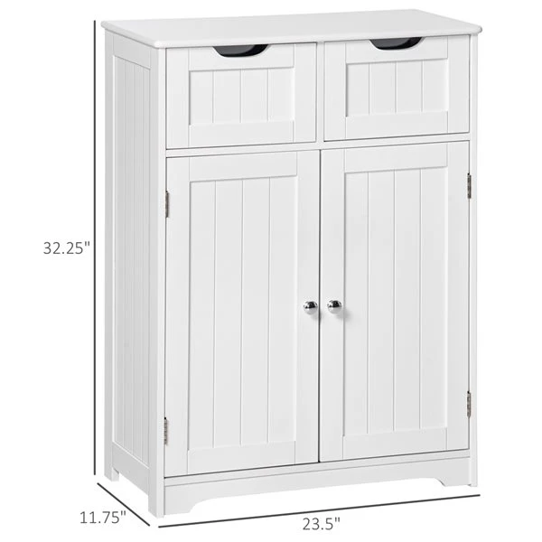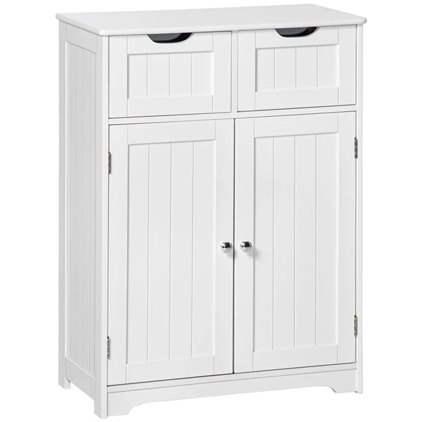 Expand the storage capacity in your bathroom with this cabinet. It is made of quality MDF board with a clean finish that fit well in various bathroom styles. Featuring 2 top drawers and 1 spacious cupboard with an adjustable shelf, this cabinet can store all your bathroom essentials. The back of the cabinet can be attached to the wall with an anti-tipping strap, making it secure and stable. Add some handy storage space to your home in the most beautiful way possible.