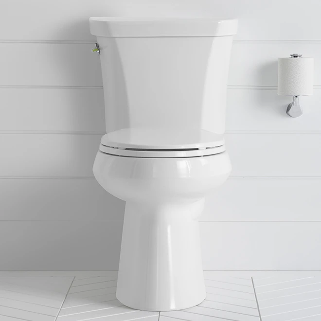 Enjoy quiet functionality with this Kohler elongated plastic toilet seat. This seat measures 14 13/64 in W x 3/4 in H x 18 19/32 in L. The Kohler Brevia plastic toilet seat’s versatile white colour lends to a traditional aesthetic and matches most decors. Its Quick-Release hinges allow effortless removal for ease of cleaning those hard-to-reach spaces. The elongated plastic toilet seat features Grip-Tight technology, which holds it securely in place. It’s a secure fit for one- and two-piece toilets. The included colour-matched hinges provide for a cohesive look. Installation is fast and easy, as this product includes attachment hardware. Manufactured of durable plastic, the toilet seat maintains a sturdy, substantial look and feel. A 1-year limited warranty backs this product.