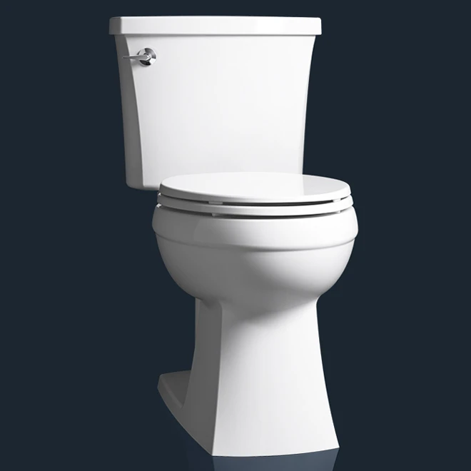 This classic-design Kohler 2-piece toilet features a standard left-hand polished chrome trip and an elongated bowl for added room and comfort. As a comfort height toilet, it offers chair-height seating, which makes sitting down and standing up easier for most adults. This toilet has a flush power of 4.8 LPF and a 2 1/8-inch glazed trapway. This Complete Solution toilet comes with everything you need in one box for installation, including the bowl, tank, slow-close seat, wax ring, and floor hardware. Backed by a 1-year limited warranty.