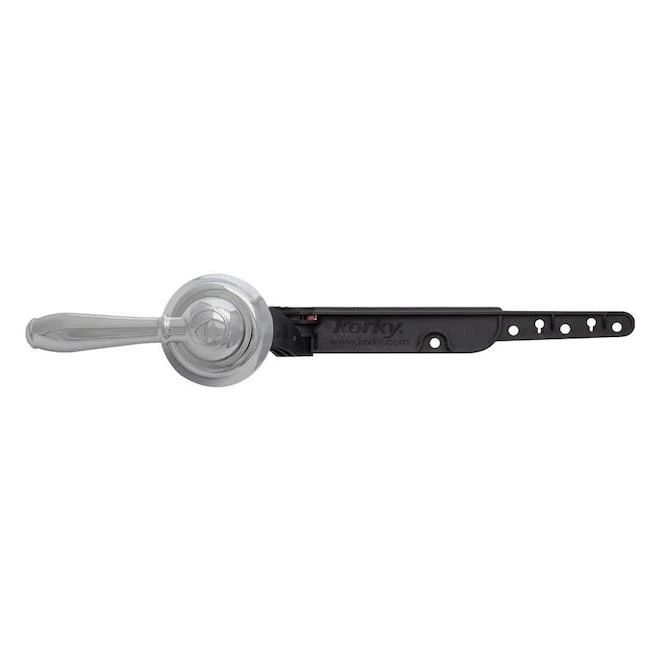 Designed to fit most toilets, this Korky Strongarm lever easily adjusts to fit all tank positions. It’s optimized for use with both 2 in and 3 in flappers and can be adjusted to eliminate the need to bend it for fitment. Its faucet style handle coming in a chrome finish is a great way to embellish any toilet and complement your bathroom’s decor.