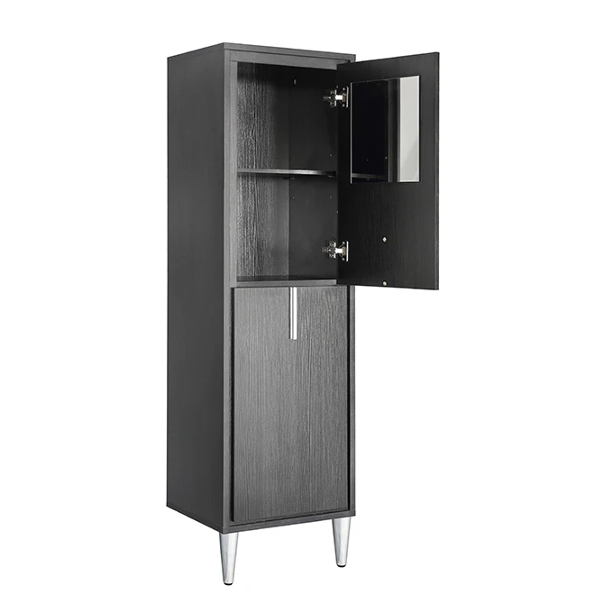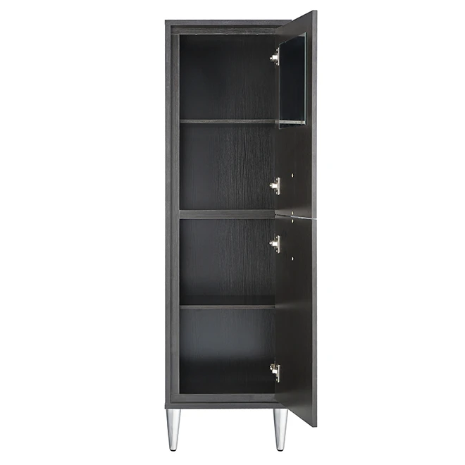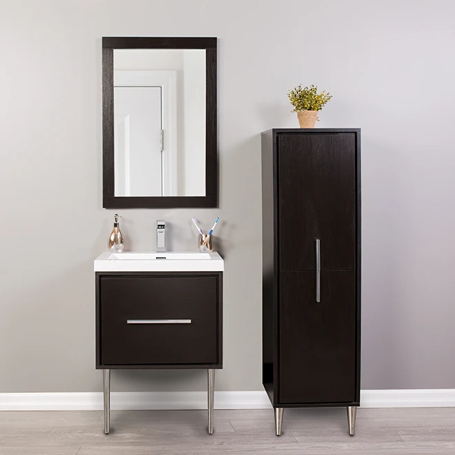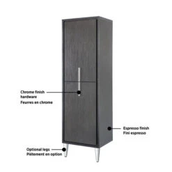 More than just a functional furniture piece, this Foremost Carlington linen cabinet brings a stylish look to your bathroom or laundry area. The 2 doors are soft closing for easy operation, and the fixed and 2 adjustable interior shelves offer plenty of storage. It even includes a handy mirror on the interior door. Easy to install, the cabinet is fully assembled and comes complete with mounting hardware, aluminum handles and optional metal legs. The 17″ (43.1 cm) cabinet can be coordinated with other Foremost Carlington furniture and the espresso finish looks great with any style of décor. 1-year warranty.