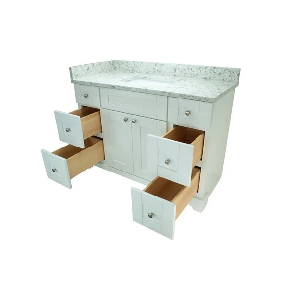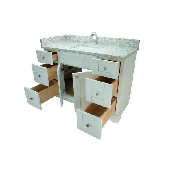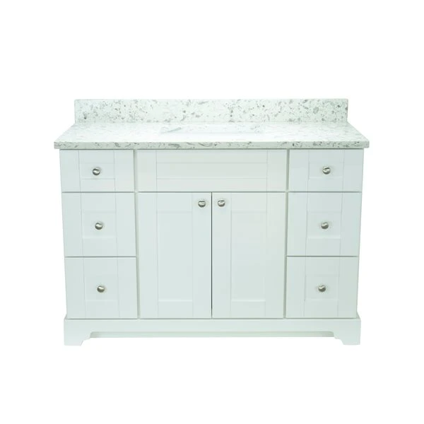 Be the first to review “Lukx Bold Damian 42-in White Single Sink Bathroom Vanity – Milky Way Quartz Top” Cancel reply