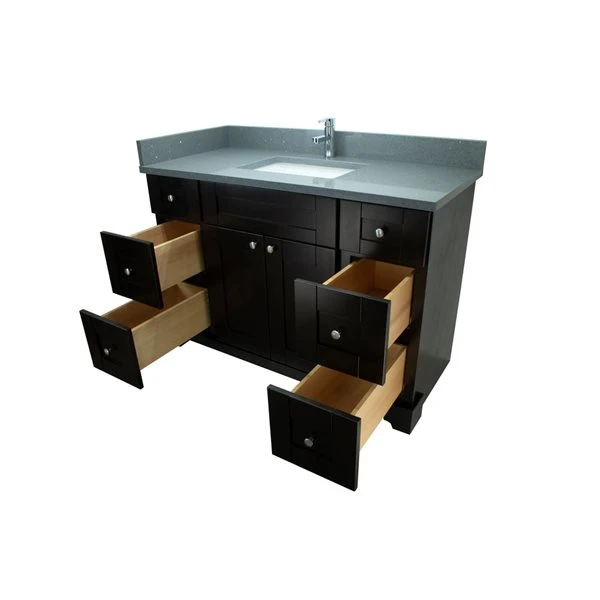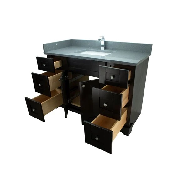 Lukx Bold Damian 48-in Espresso Single Sink Bathroom Vanity – Crystal Grey Quartz Top