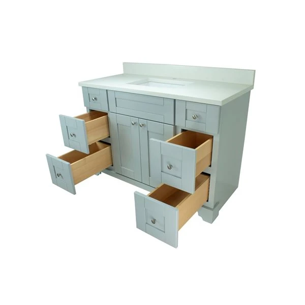 Lukx Bold Damian 48-in Grey Single Sink Bathroom Vanity – Silk White Quartz Top