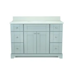 Be the first to review “Lukx Bold Damian 48-in Grey Single Sink Bathroom Vanity – Silk White Quartz Top” Cancel reply