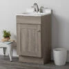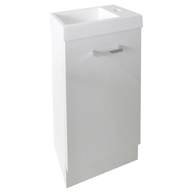 Save space in a small bathroom or powder room with this single-door, Luxo Marbre classic vanity. The product comes assembled for easy installation, which makes it an easy job for DIY fans. Each unit measures 15 3/4 in W x 8 5/8 in D x 33 7/8 in H, which makes it sleek and compact. This single-sink bathroom vanity made from medium-density fibreboard has an attached sink and a shelf, so there’s plenty of storage for bathroom essentials. The synthetic-marble sink is nonporous, so it resists stains and moisture. It also makes it easy to clean. Your bathroom can look spacious and elegant with this freestanding vanity. The sink features a crisp white colour and a modern silhouette. The MDF material used for the vanity adds extra strength and durability to deliver long-lasting performance.