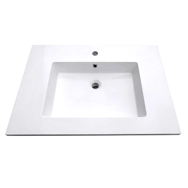 Luxo Marbre Vanity Top With Sink – White Synthetic Marble – Single-Mount Faucet – Overflow Drain