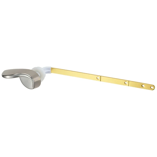 Upgrade your flushing mechanism by investing in this Master Plumber plastic tank lever. It has an easy-to-install universal design that fits the front or corner of the toilet at 4-in, 6-in and 8-in. With the side-mount handle, the tank lever gives your toilet a clean appearance. The lever resists corrosion, which maintains its structural integrity for a long time. This brushed nickel toilet lever finish gives it a smooth look. It’s easy to clean, which requires little to no maintenance. This tank lever has an 8-in long arm, which allows you to pull the chain with ease. This bent mount tank lever comes with a 1-year warranty. Its material has anti-bacterial properties which prevent microorganism infestation.