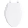 Improve hygiene of your toilet with this Mayfair easy clean toilet seat. With a smooth crane white finish, it matches with a variety of toilets. The plastic component resists moisture damages such as warping or expanding. With a length of 18.62 in, this elongated plastic toilet seat fits into most standard sized toilets. Installation and maintenance are easy with its lightweight feature. Its strong plastic is scratch-resistant, which increases durability. This white soft close toilet seat eliminates slamming noise and makes a quite closing. It’s a reliable choice for residential and public toilets. With two sturdy Sta-Tite hinges, this toilet seat useful performance enhances. This Mayfair toilet seat comes with a 1-year warranty.