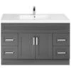 - Vanity cabinet, brushed nickel cabinet hardware, and countertop with integrated sink included