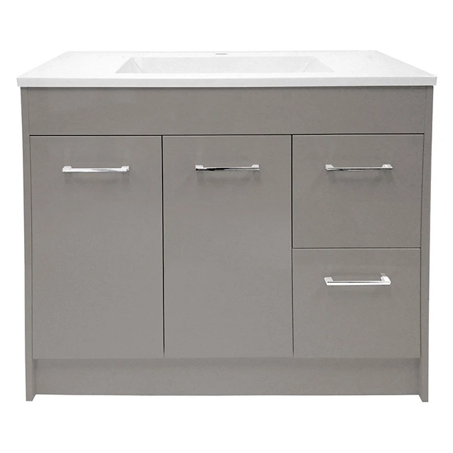 Tender By Luxo Marbre Bathroom Vanity – 1 Rectangular Sink – 2 Doors 2 Drawers – 35.25-in – MDF – Grey