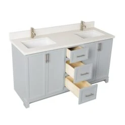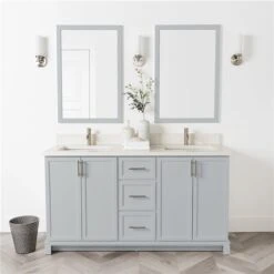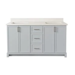 Be the first to review “Tenor 60-in Double Harbour Grey Vanity With Pearl Quartz Top” Cancel reply