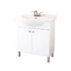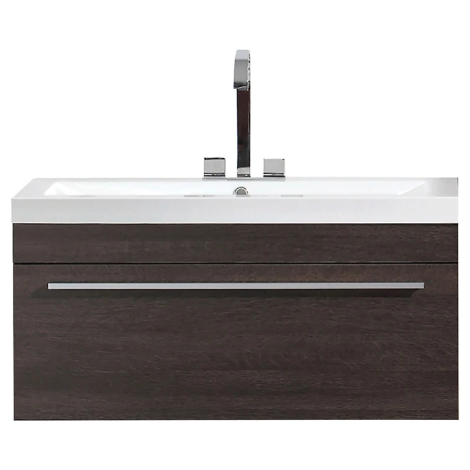 Breathe new life into your bathroom décor with this Luxo Marbre Relax vanity and sink. The vanity includes a white synthetic marble sink with single hole and overflow that perfectly complements the Alamo oak finish of the vanity cabinet. A large drawer provides storage space for bathroom supplies and sundries, and a straight chromed handle gives it contemporary style. Create a completely coordinated look for your bathroom by pairing this vanity sink with other Luxo Marbre bathroom furniture.
