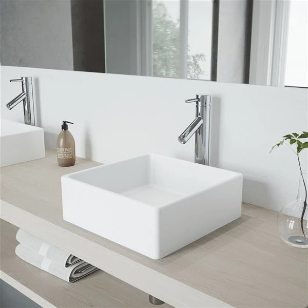 VIGO Dianthus Square Bathroom Sink And Faucet White And Chrome