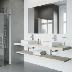 - Vessel mount installation: install bathroom sink above the counter to save space and bring contemporary look